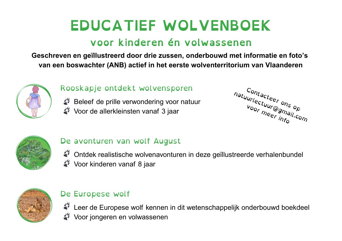 Een splinternieuw driedelig wolvenboek voor kinderen én volwassenen. Een educatief groeiboek, ontworpen door drie zussen en een boswachter van het Agentschap voor Natuur en Bos die nauw betrokken is bij de wolvenmonitoring in Belgisch Limburg. Via twee rijk geïllustreerde verhalen krijgen jonge kinderen een realistisch beeld van de wolf.