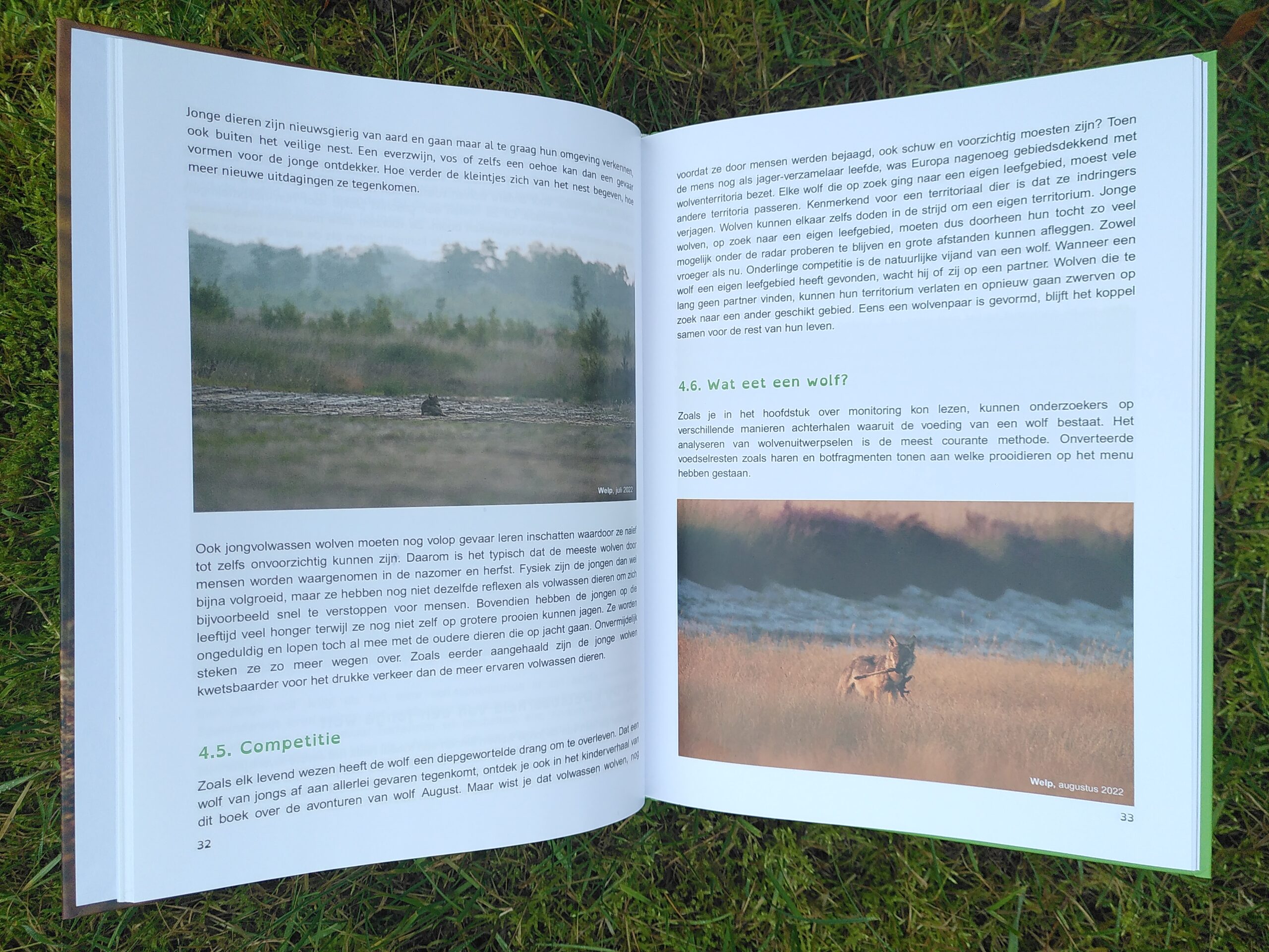 ‘De avonturen van wolf Augustus’ is tegelijk een boek voor jongeren en volwassenen én een voorleesboek voor jonge kinderen. Het telt 123 pagina’s met tal van prenten en foto’s. Formaat A4, 210 x 279 mm. Uitgevoerd met een hardcover met de Limburgse wolven in de hoofdrol.